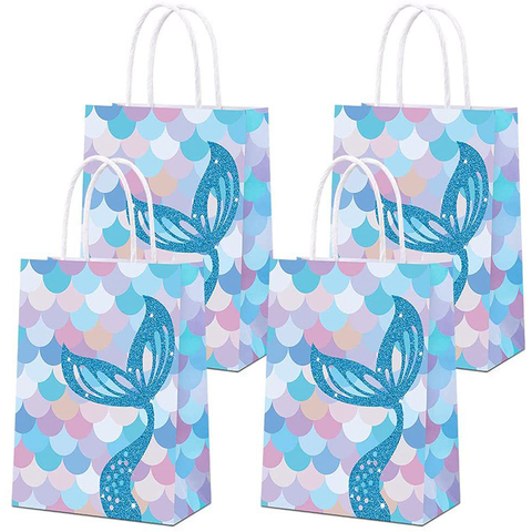 Sacchetto di imballaggio regalo per festa a sirena transfrontaliera del produttore sacchetto di carta Kraft per cartoni animati con Logo personalizzato